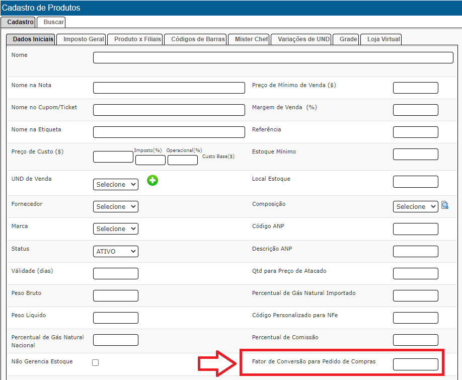 É utilizado para transforma a quantidade de compra em quantidades de venda do ERP.