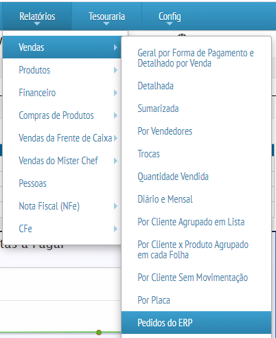Acesse no menu RELATÓRIOS > VENDAS > PEDIDOS DO ERP