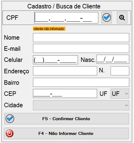 Com o programa do Frente de Caixa HostMundo Aberto pressione F3 ou F8, irá aparecer a tela de cadastro de cliente (a mesma que aparece ao iniciar a venda), Informe os dados do cliente e confirme para cadastrar o cliente, depois solicite ao responsavel que acesse o ERP e libere o cadastro feito para venda no FIDELIDADE (a liberação de venda no FIDELIDADE segue os critérios de crédito estabelecidos pela empresa)
