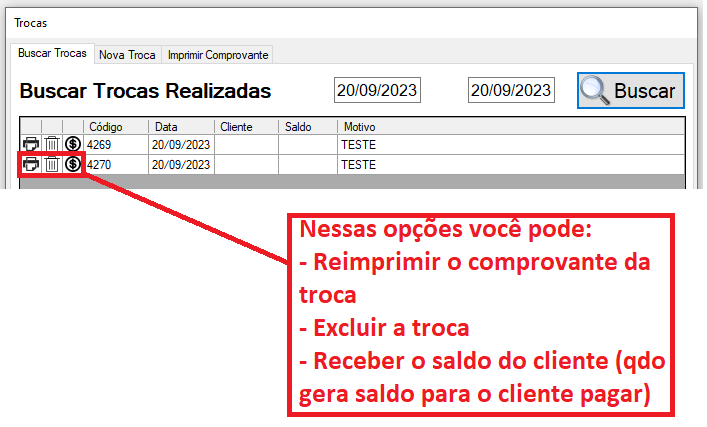 Você também pode receber depois buscando as trocas registradas na opção "BUSCAR TROCAS" nessa mesma tela.