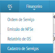 Acesse o menu OS > Cadastro de Serviços
