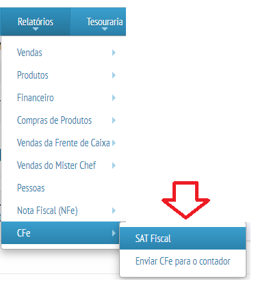 Acesse o menu RELATÓRIOS > CFe > SAT FISCAL