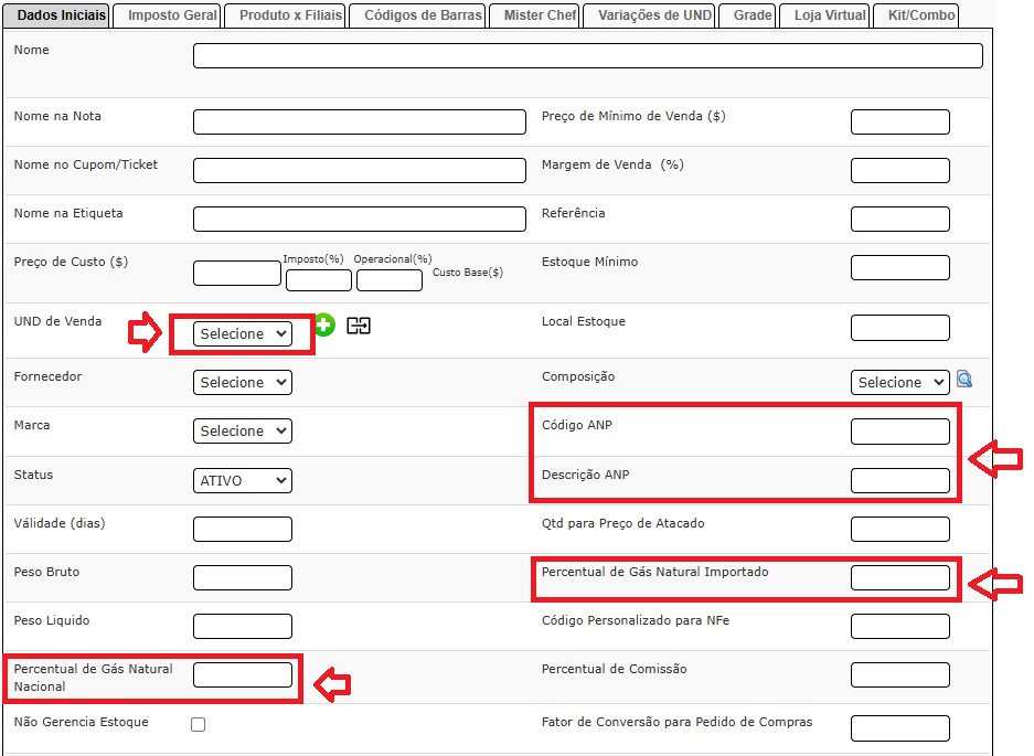 - Em "UND de Venda" selecione a unidade correta de acordo com a Receita Federal
