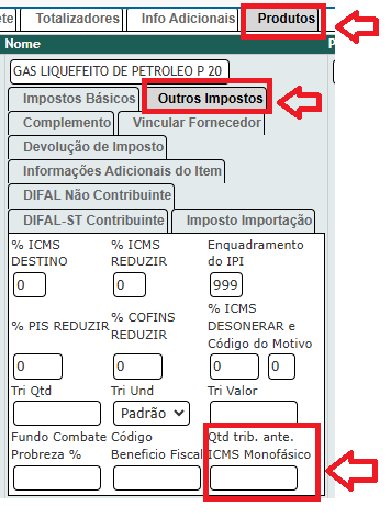 verifique se é necessário preencher o campo "Qtd. trib. ante. ICMS Monofásico", caso não informar será considerado zero.