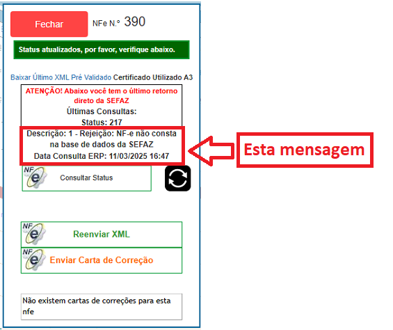 Qundo você reenviar uma NF-e e sempre retornar a mensagem: