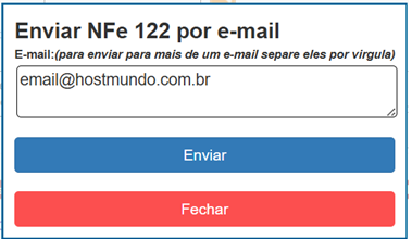 Irá aparecer uma janela para você visualizar para quais e-mail serão enviado a nota fiscal (esses e-mail vem do cadastro da pessoa no sistema), nesta janela você pode informar um novo e-mail, acrescentar ou alterar os e-mails: