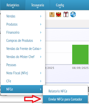 Acesse no menu do ERP a opção RELATÓRIOS > NFCE > ENVIAR NFCE PARA CONTADOR