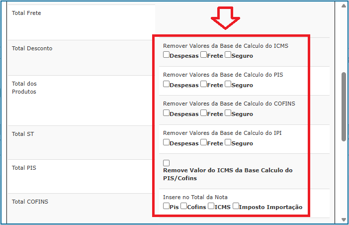 Para isso, no momento da emissão da NFe clique na guia e desça a barra de rolagem até ver estas opções:
