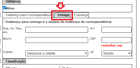 No cadastro de Pessoas, informe o endereço de entrega: