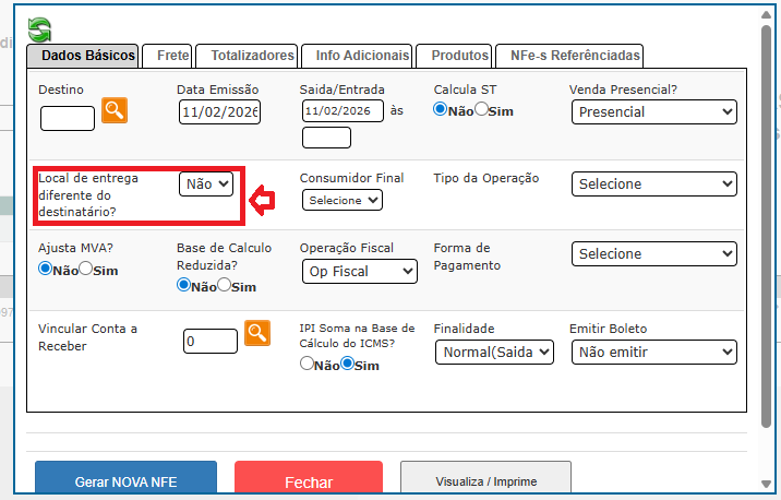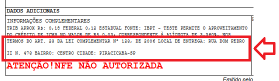 A nota fiscal irá considera para efeitos da operação fiscal o endereço de entrega, e este endereço irá exibir nas informações adicionais da nota: